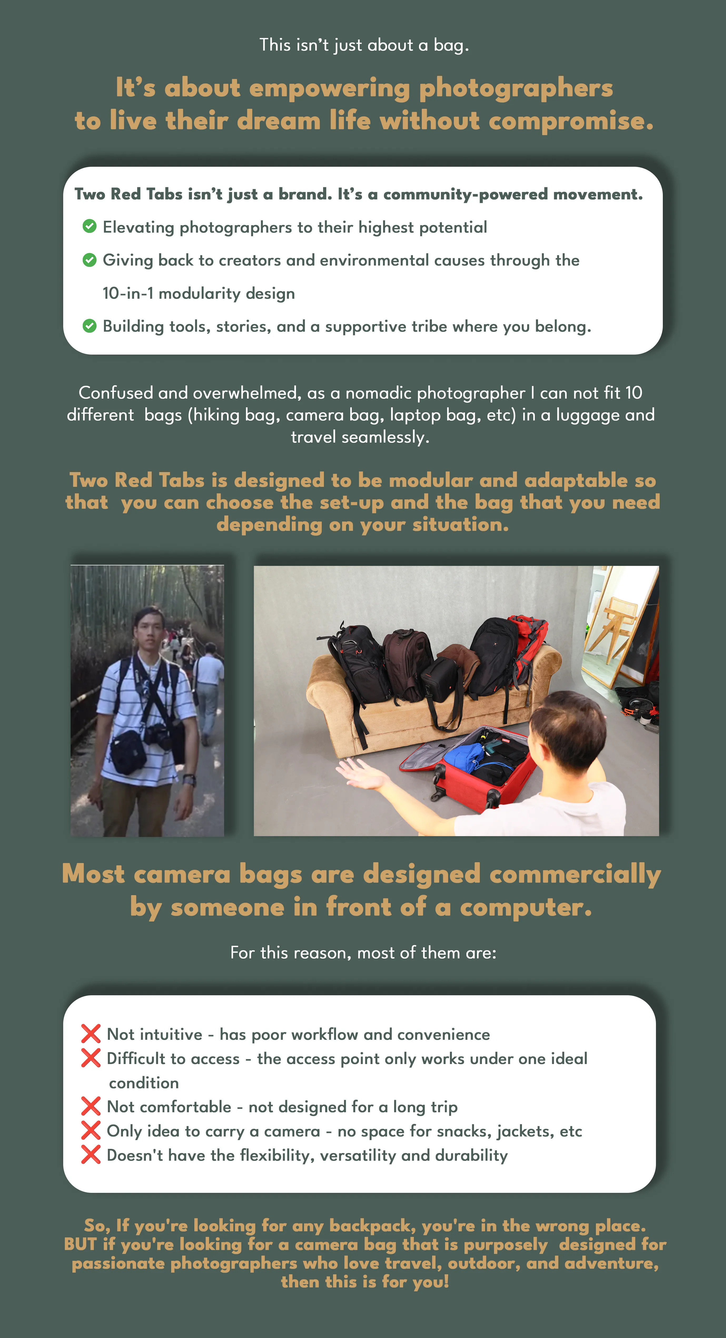 Aloysius's dedication to quality and detail is reflected in every aspect of Two Red Tabs, and as COO, he ensures that every backpack meets the highest quality possible.