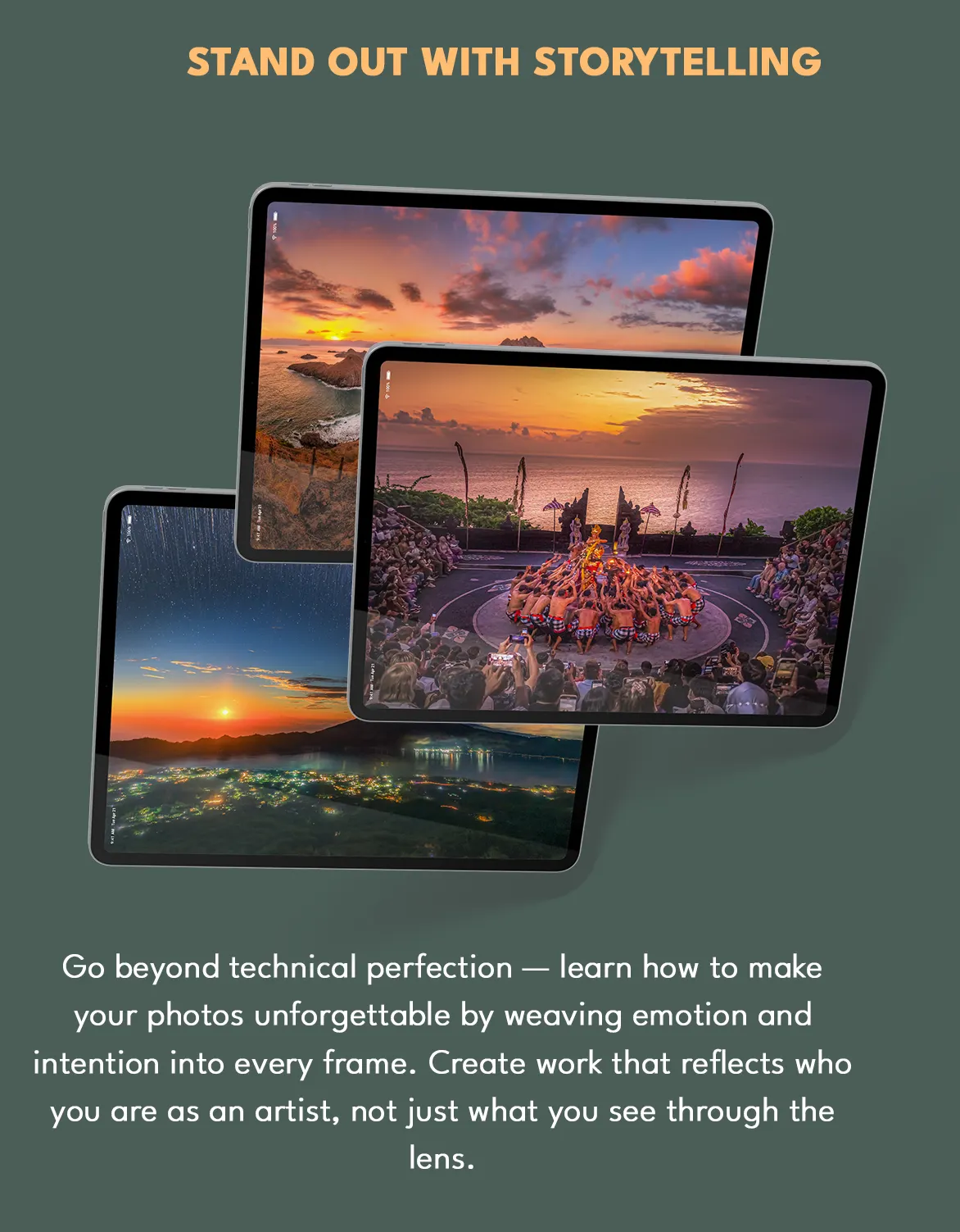 He is passionate about helping others who are in his previous situation and has helped 2,000+ students to pursue their passion in photography. Now, many of his students are able to live their truest, passionate, and fulfilled lives doing what they love the most.