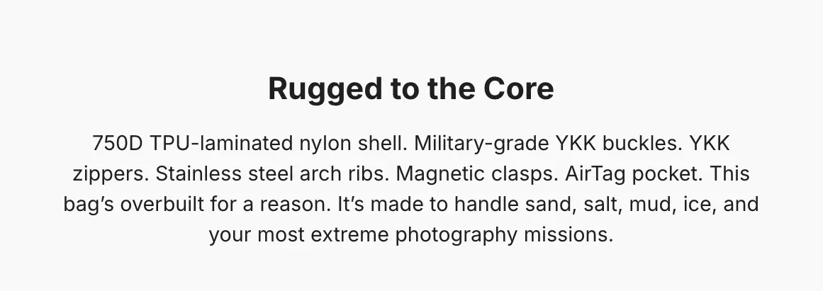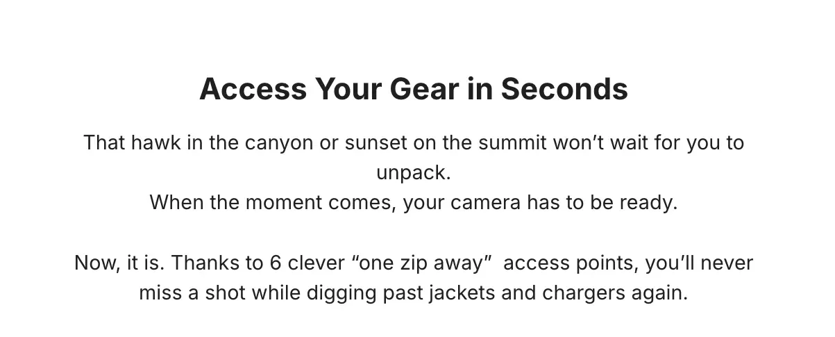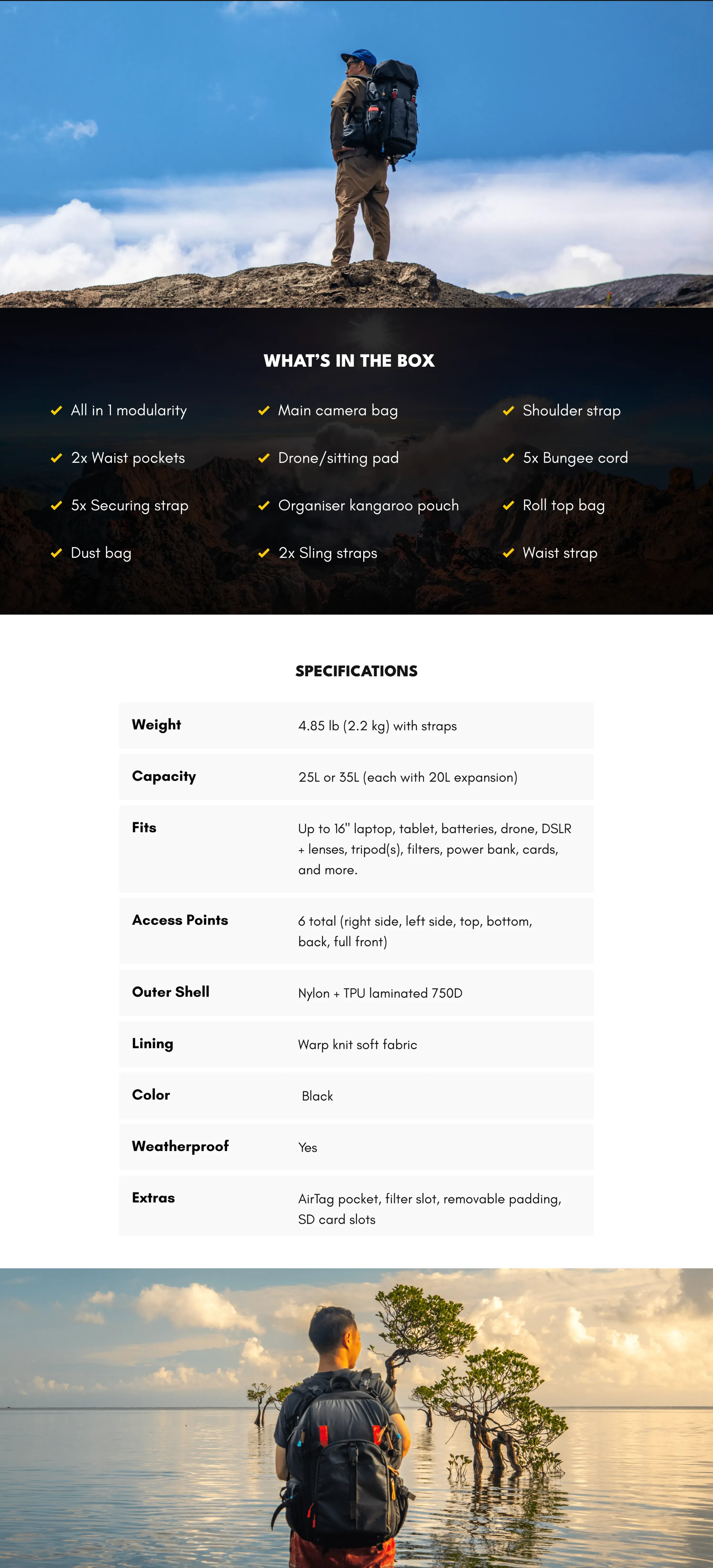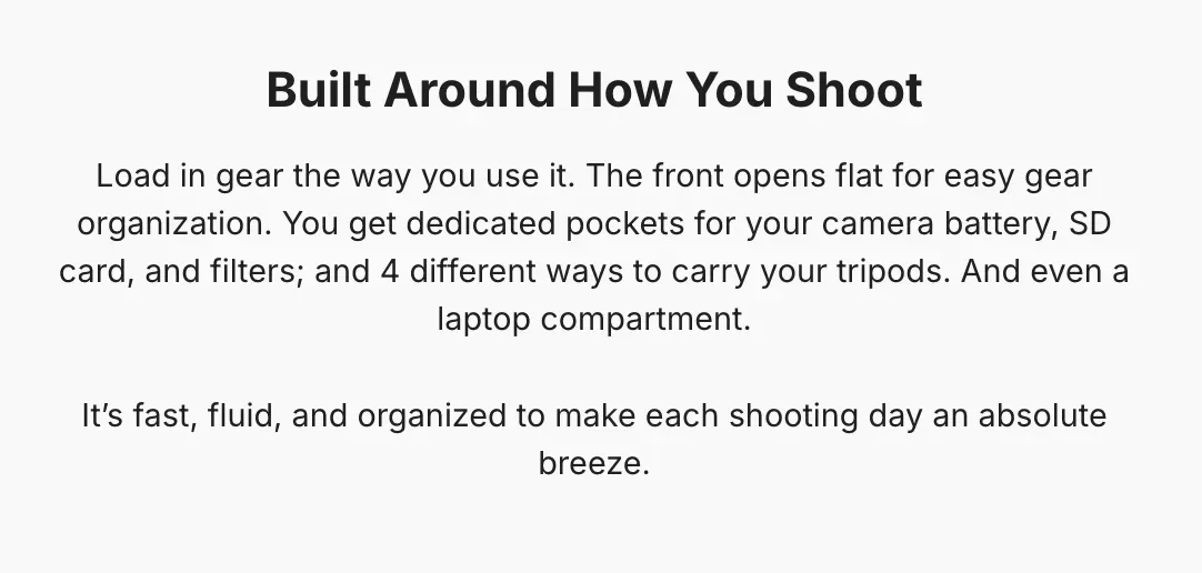 No. It’s built for anyone serious about photography. If you’ve missed shots, dealt with back pain, or struggled with poor designs, this bag solves it. Designed by a pro with years of outdoor experience.