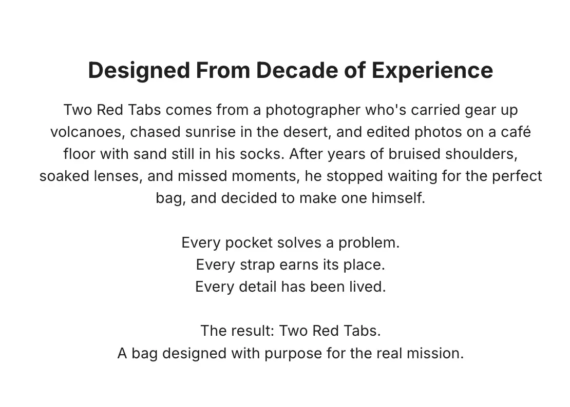 The result is Two Red Tabs, a product that combines functional excellence with craftsmanship.